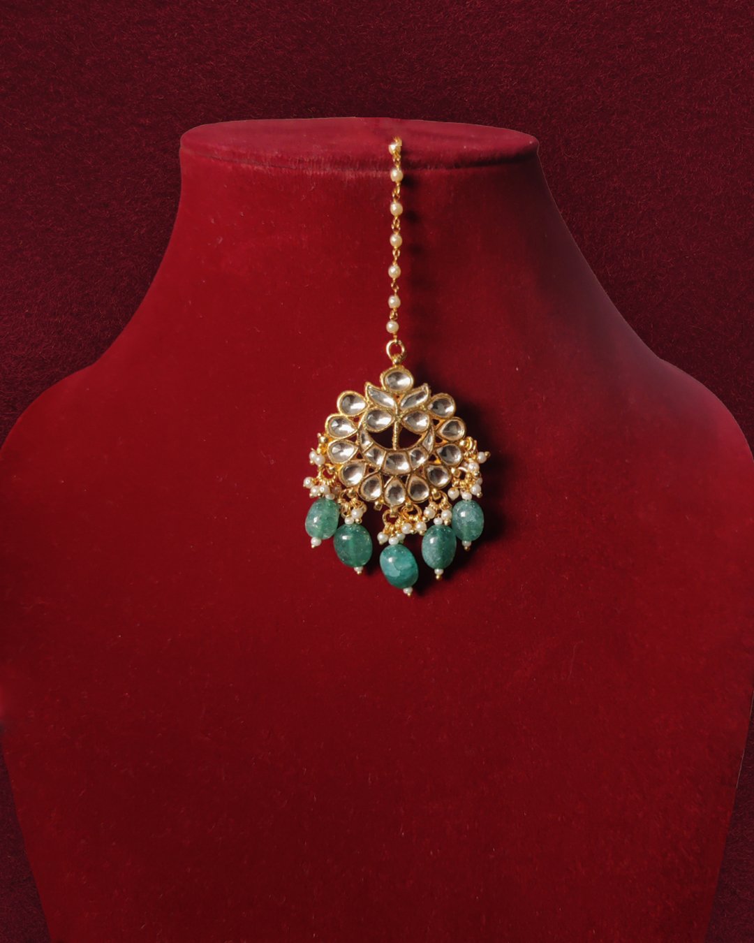 Sparkling Elegance Timeless Green Jadtar Maang Tika